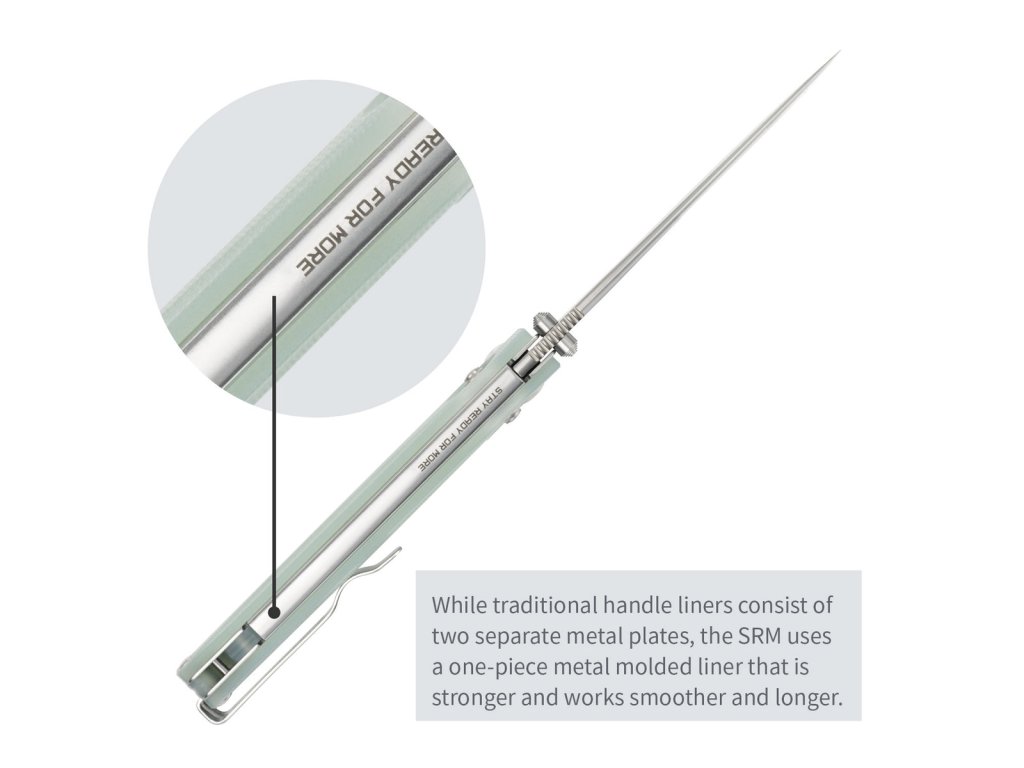 • Všechny čepele SRM jsou ošetřeny jemným ohřevem a speciální kryogenní úpravou pro lepší udržení ostří, tvrdost, houževnatost a odolnost proti korozi.
