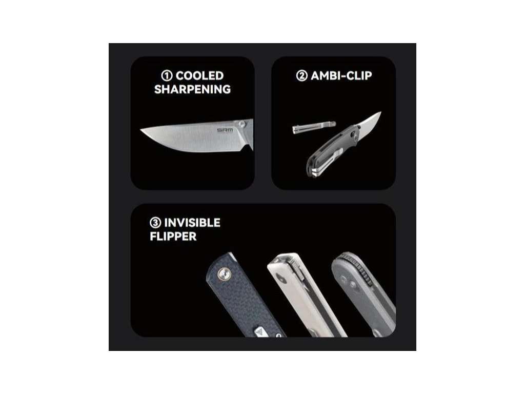 • Všechny čepele SRM jsou ošetřeny jemným ohřevem a speciální kryogenní úpravou pro lepší udržení ostří, tvrdost, houževnatost a odolnost proti korozi.